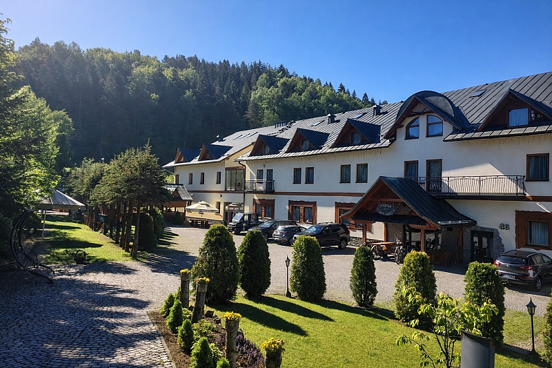 Komfortowe Noclegi: Nasza oferta to starannie zaprojektowane pokoje i apartamenty, które łączą przytulność z wysokim standardem. Każdy pokój został wyposażony w taki sposób, aby zapewnić idealne warunki do snu i pracy. Z balkonów rozpościera się kojący widok na panoramę Beskidu Sądeckiego.