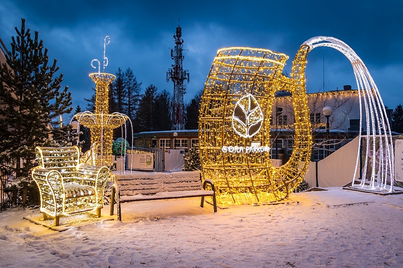 Setki tysięcy światełek LED rozświetla szczyt Góry Parkowej położonej w sercu ponad 200 letniego Parku Zdrojowego. Park Światła to unikatowa, retro, świetlna instalacja zdobiąca szczyt góry w okresie zimy. Iluminacje tworzą bajkowy klimat, a ich retro charakter kontynuuje podróż w czasie do lat 30. Znajdziecie tu gramofon, z którego popłyną dźwięki starej melodii, czy retro auto do którego można wsiąść. Romantyczna rozświetlona altanka, czy 7 metrowa ramka do zdjęć z nazwą szczytu to tylko kilka z całej masy rzeźb świetlnych tworzących Park Światła na szczycie . Retro charakter odczuć można również spotykając elegancką świetlistą parę zapraszającą z Pergoli do wejścia schodkami do kawiarni, czy okazałej wielkości zaprzęgu sań z końmi, które powstały na podstawie historycznej fotografii wykonanej w latach 30.w uzdrowisku. Park Światła czynny jest od grudnia do końca lutego codziennie od godziny 15:00