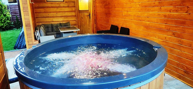 Ogród i mini SpaOgród otaczający willę jest pełen atrakcji. Z jednej jego strony znajduje się królestwo dzieci — plac zabaw z trampoliną, piaskownicą i domkami. Z drugiej strony mamy altanę z leżakami, huśtawki, basen ogrodowy, szachy ogrodowe, grill i miejsce na ognisko dla małych i dużych grup. Jest tu też tak zwany cichy kącik, gdzie można oddać się błogiemu relaksowi w mini saunie ogrodowej i ruskiej bani . Szczególnie przyjemnie spędza się tu ciepłe, letnie wieczory.
