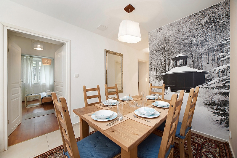 Oferujemy piękny i luksusowy apartament w stuletnim pensjonacie, utrzymany w klimacie lat 20-tych. Przestronny salon z kominkiem i dużym tarasem oraz dwie duże sypialnie zapewnią wygodę i przyjemny wypoczynek.