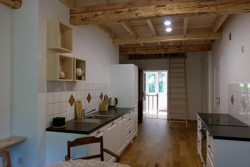 Jednocześnie macie Państwo nowocześnie wyposażoną kuchnię, duży taras, na którym można przygotować grilla i inne posiłki. Do dyspozycji naszych gości jest całe I piętro pensjonatu, o powierzchni ponad 90 m².