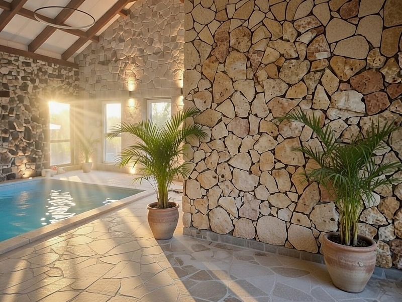 Wnętrza z kamienia, drewna i szkła tworzą harmonijny klimat luksusu i natury, a goście mogą korzystać z: