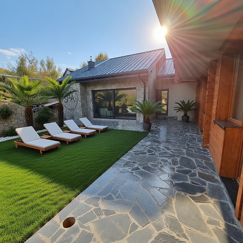 - Strefy relaksu z leżakami i muzyką w tle