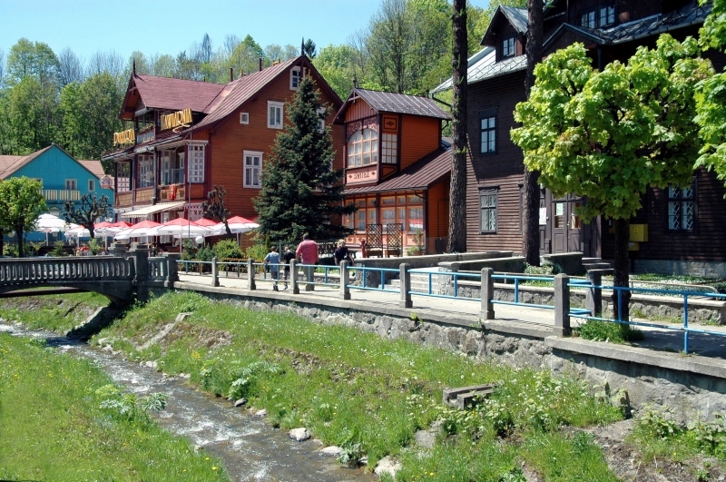 • Real recreation in the mountains Tourist site 'DOMKI W LESIE' is located in a scenic valley in Tylicz, 6 km from the center of Krynica. It consists of 8 wooden houses up to high standards. W ...more